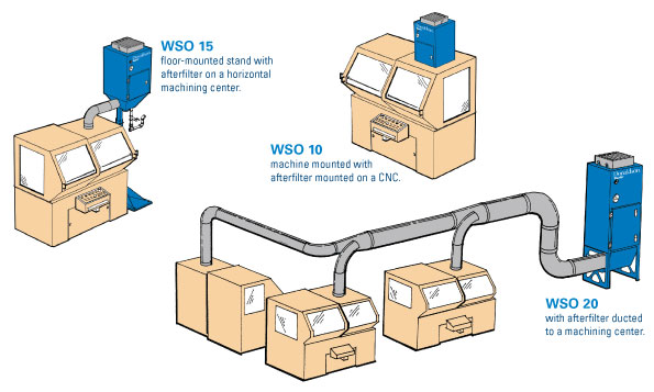 WSO油霧過(guò)濾器可以滿足各種設(shè)備的配置要求:可安裝在機(jī)頂上、地面上或連接中央管道系統(tǒng)。