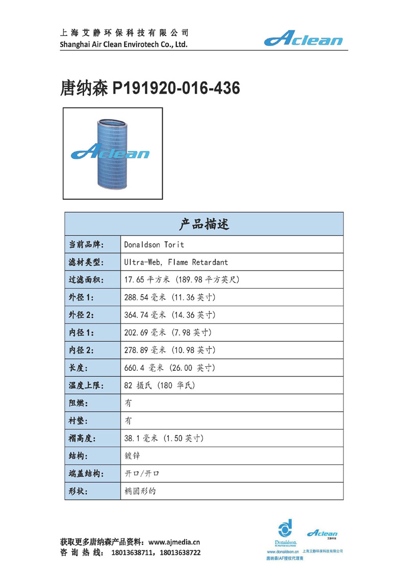唐納森橢圓濾筒P191920